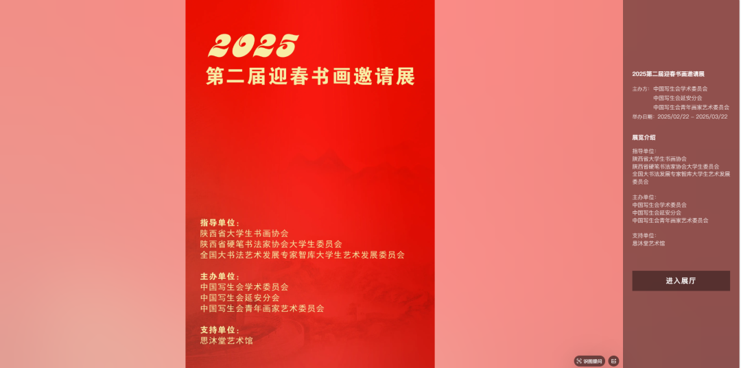 思沐堂云展专注 VR 展厅、线上虚拟展厅与云展服务。为政府、事业单位、企业、培训机构、艺术家及个人艺术展打造线上3D展览。思沐堂云展以VR虚拟展厅+线上云展平台为核心,凭借先进技术与专业团队,打破时空局限,提供定制方案,助各领域客户突破展示限制,提升影响力,打造永不落幕的云端展览空间!期待与您携手,开启线上展览新时代。